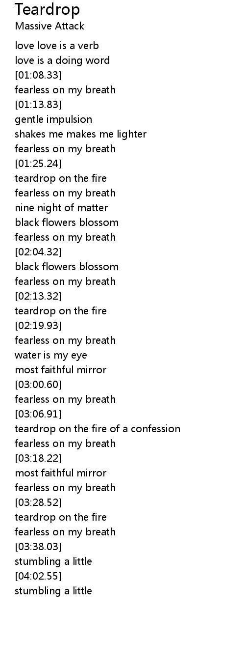Your Massive Attack Teardrop Lyrics Youtube pic are ready in this page. Massive Attack Teardrop Lyrics Youtube are a theme that is being searched for and favored by netizens today. You can Save the Massive Attack Teardrop Lyrics Youtube here. Get all royalty-free pix.